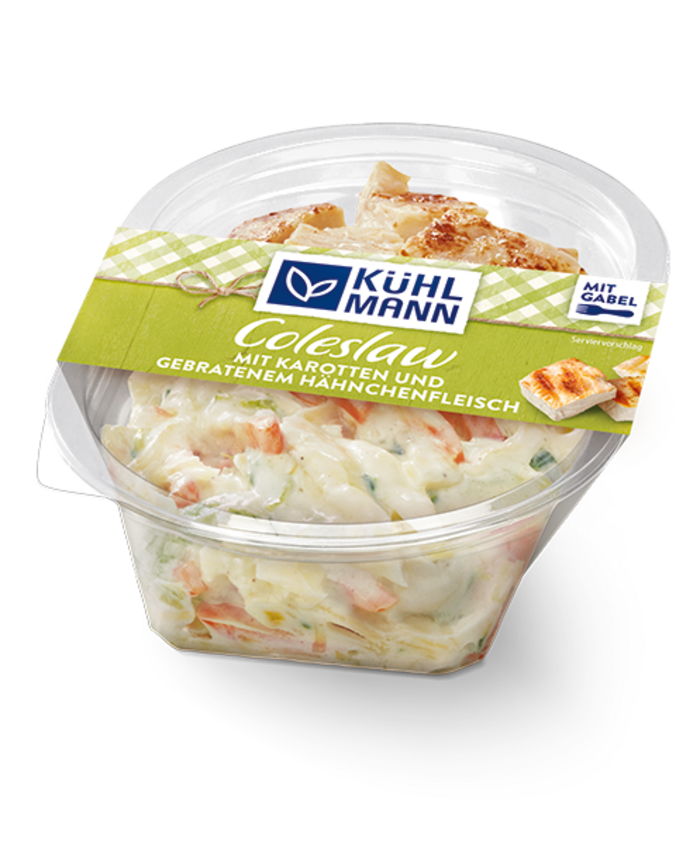 White cabbage 36%, canola oil, carrot 13%, added water, fried chicken breast, marinated, seasoned with liquid seasoning 7% (chicken breast 6%*, added water, starch, salt, dextrose), bell pepper, sugar, leek, herb vinegar (spirit vinegar, herb and spice extracts), spirit vinegar, egg yolk**, salt, starch, spices, herbs, antioxidant: ascorbic acid, thickening agents: guar gum, xanthan gum; acidity regulator: sodium acetate.