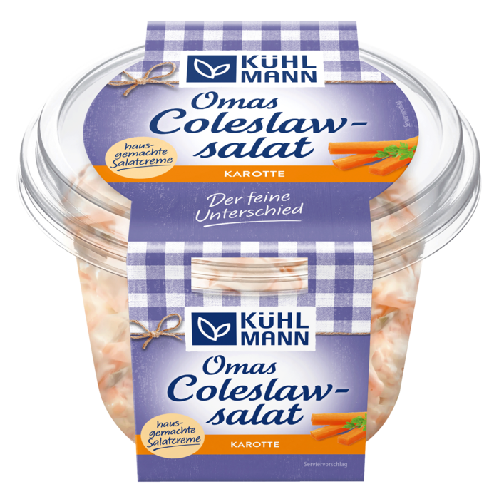 white cabbage 55%, rapeseed oil, carrots 9%, drinking water, sugar, cream, apple vinegar, table salt, starch, egg yolk*, spirit vinegar, mustard seeds, onions, apple juice concentrate, spices, thickener: guar gum; acidity regulator: sodium acetates; antioxidant: ascorbic acid; preservative: potassium sorbate