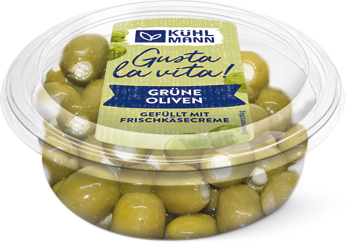 Green olives 64%, bell pepper, cream cheese 11%, canola oil, herbs, salt, spirit vinegar, sugar, spices, starch, acidifiers: citric acid, lactic acid; antioxidant: ascorbic acid.