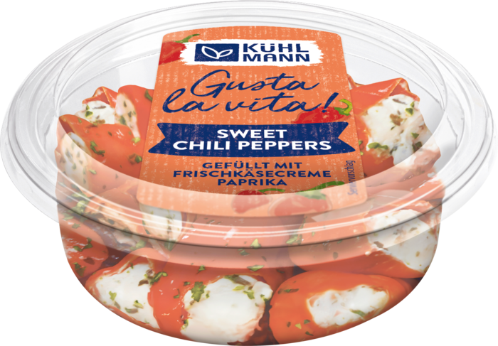 Chili pepper 47%, cream cheese 20%, blackened olives (green olives, salt, stabilizer: ferrous gluconate; acidifier: lactic acid), green chili pepper, bell pepper paste 6%, (bell pepper, concentrated tomato paste, added water, eggplant, canola oil, garlic, spirit vinegar, sugar, starch, salt, chili powder), canola oil, starch, spirit vinegar, sugar, salt, onion, herbs, acidifier: citric acid, antioxidant: ascorbic acid, firming agent: calcium chloride.