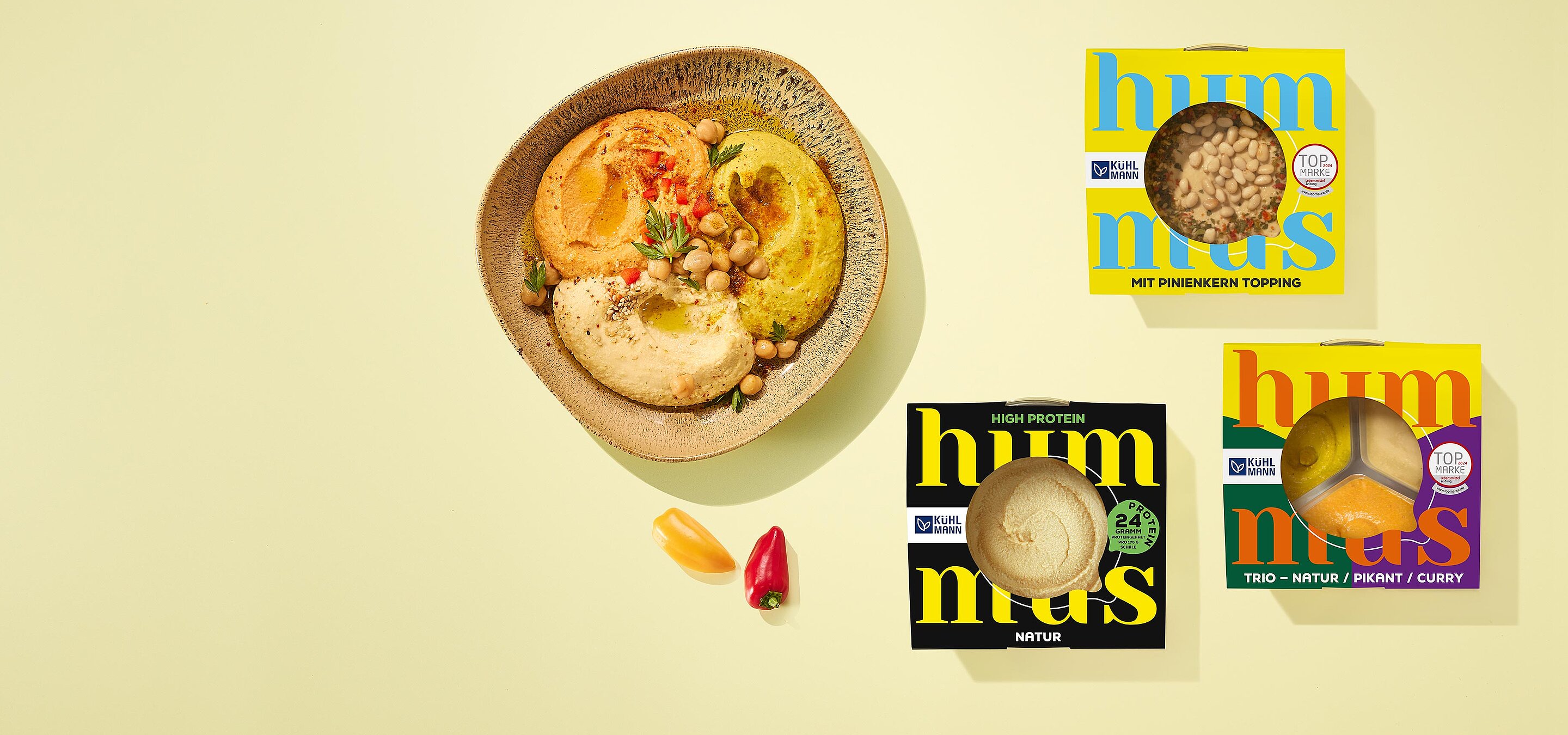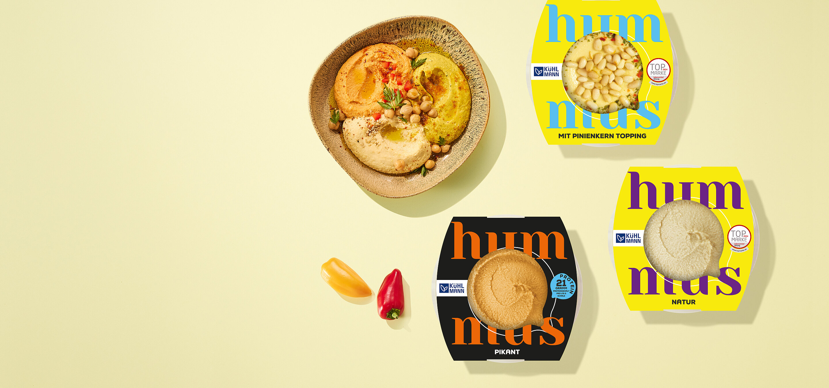 Our hummus range with delicately blended seasonings takes delicatessen dining to the highest level. How do you like yours? Topped with traditional pine nuts, or scattered with cranberries for a touch of sweetness? Or maybe you’re the spicy chili, balsamic and onion type? We’ve also added two brand-new delicious high-protein varieties to our range – each with an amazing 24 g of protein per dish. So, which hummus will it be for you?