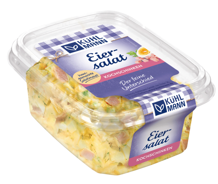 Eier* 44 %, Rapsöl, Trinkwasser, Kochschinken 8 % (Schweinefleisch, Nitritpökelsalz (Speisesalz, Konservierungsstoff: Natriumnitrit), Dextrose, Gewürze, Antioxidationsmittel: Natriumisoascorbat, Stabilisator: Natriumacetate, Natriumcitrate), Zucker, Eigelb*, Branntweinessig, Stärke, Weißweinessig, Speisesalz, färbendes Karottenkonzentrat, Senfsaaten, Kräuter, Gewürze, Maltodextrin, Rauch, Verdickungsmittel: Guarkernmehl, Säureregulator: Natriumacetate; Konservierungsstoffe: Kaliumsorbat.